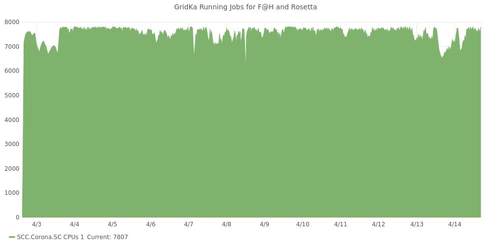 The project COBalD/TARDIS developed at the Karlsruhe Institute of Technology (KIT) and funded within the scope of ErUM-Data IDT is supporting the fight against COVID-19. COBalD/TARDIS, otherwise used to dynamically provision and transparently integrate opportunistic resources for High Energy Physics, is currently acting as a job factory and submission infrastructure for work-units of the Folding@Home and Rosetta@Home projects at the GridKa Tier 1 centre at KIT. [SCC News]